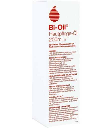 Anwendungsgebiet von Bi OilBi Oil ist eine Spezialpflege, entwickelt, um das Erscheinungsbild von Narben, Dehnungsstreifen und ungleichmäßiger Hauttönung zu verbessern. Hochwertige Vitamine und pflanzliche Extrakte verhelfen überdehnter Haut zu mehr Festigkeit. Bi Oil stärkt die erschöpfte Dermis und ist nicht fettend.