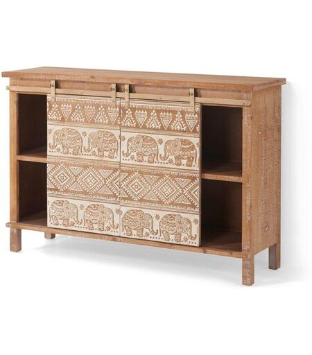 Sideboard mit Schubladen und Schiebetüren, die mit Ethno Motiven verziert sind ...