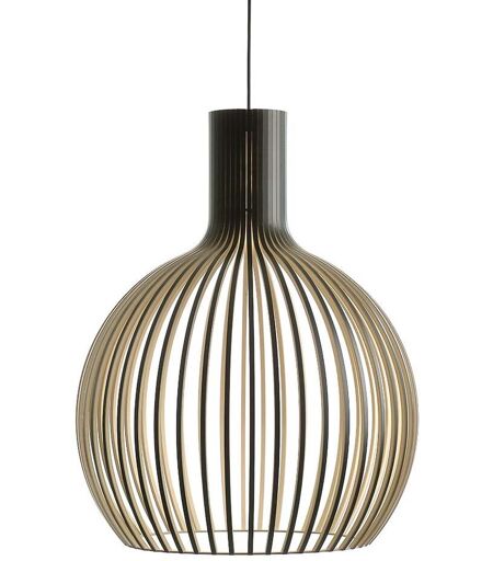 Die Secto Design Octo 4240 Pendelleuchte überzeugt durch ihr natürliches Design und das behagliche Licht, das sie erzeugt. Sie hat einen zwiebelförmigen Schirm, wodurch sie einerseits perfekt mit runden Esstischen harmoniert, andererseits aber auch einen schönen Kontrast zu rechteckigen Tischen bildet. Die Pendelleuchte Octo 4240 wird, wie alle Leuchten des finnischen Herstellers Secto Design, in Handarbeit aus Birkensperrholzlatten hergestellt, die mit einer Konstruktion aus Flugzeugsperrholz verbunden werden. Der durch diese Lattenkonstruktion durchbrochene Schirm richtet das Licht nach unten und streut es gleichzeitig auch seitlich. Außergewöhnlich, auffällig, nordisch, natürlich - das sind nur einige Adjektive, die das besondere Design dieser Hängeleuchte beschreiben. Octo 4240 von Secto braucht viel Platz, um ihre Schönheit zu entfalten, geizt dann jedoch auch nicht mit ihren R... ...