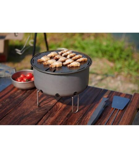 Der Keith Titanium Portable Grill ist zwar aus Titan gefertigt, aber vielleicht nicht so leicht, wie man vermuten mag. Das liegt vor allem an der massiven, kräftigen Grillplatte, die allein etwas mehr als ein halbes Kilo Gewicht mitbringt. Die Materialstärke ist an diesem Punkt aber sinnvoll so gewählt, damit sich das Titan nicht unter Hitzeeinwirkung verzieht. Auch kann so die Hitze etwas besser gespeichert werden. Der Keith Titanium Portable Grill bringt außerdem ein leichtes Ascheblech mit, das auf den Boden der Grillschale gelegt wird. Alle drei Teile lassen sich nach ihrem Einsatz in dem mitgelieferten Packsack verstauen, damit du den Keith Titanium Portable Grill bequem transportieren kannst. Sowohl die Grillplatte als auch das Ascheblech haben jeweils zwei Schlitze bekommen, in die du zwei Essstäbchen oder zum Beispiel die Titanzange des Herstellers (Ti2206) klemmen kannst, um die Platten sicher zu bewegen. Zwischen dem Boden und dem Blech bleibt ein wenig Luft, damit der von dir gewählte Brennstoff permanent mit Sauerstoff versorgt werden kann. Seitliche Löcher in der Grillschale tragen ebenfalls dazu bei. Im Unterschied zu Aluminium reagiert Titan außerdem nicht mit salzigen oder säurehaltigen Speisen, sodass du alle möglichen Lebensmittel unbedenklich auf dem Keith Titanium Portable Grill zubereiten kannst. Wenn du darauf achtest, dass auf der Grillplatte genügend Öl vorhanden und die Platte gleichmäßig durcherhitzt ist, reduzierst du auch das Risiko, dass deine Lebensmittel beim Grillen anbrennen. Alles in allem ist der Keith Titanium Portable Grill damit ein kompakter, robuster und leistungsstarker Grill für den Urlaub oder die heimische Terrasse. ...