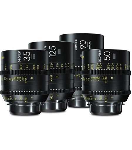 DZOFILM Vespid Prime 4-Lens Kit (35/50/125 T2.1 + Macro 90 T2.8) metric Das Vespid ist das leistungsstarke Vollformat-Kinoobjektiv von DZOFILM. Es ermöglicht eine akkurate Farbwiedergabe und arbeitet Details bei Filmaufnahmen heraus. Klare Bilder, natürliche Übergänge zwischen Schärfe und Unschärfe und minimales Fokus-Breathing. Der ideale Begleiter für Deine Dokumentarfilme, TVC, MV, Werbespots, Online-Filme, Live- und Independent-Filme, etc. ...