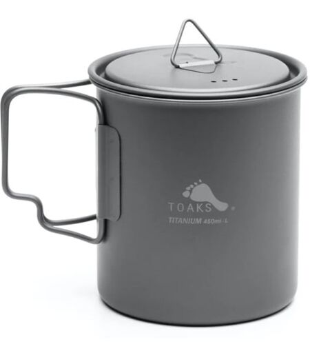 Der Toaks Titanium Light 450 ml Cup mit Deckel hat klappbare Griff erhalten und wird in dieser Version mit einem kleinen Deckel geliefert. Auch der gepolsterte Meshbeutel ist schon mit dabei, sodass du beides zusammen plus eventuelles Kochzubehör kompakt und sauber transportieren kannst. Wenn du sie mit anderen Geschirrteilen ineinander stapeln willst, kannst du die Tasse zum Beispiel in Toaks-Töpfe mit 95 mm Durchmesser packen (z.B. 750 ml Pot). Mit dem dazugehörigen Deckel wird der Toaks Titanium Light 450ml Cup mit Deckel zum Kochtopf für Minimalisten oder hält einfach das Heißgetränk länger warm und schützt es vor herabfallenden Blättern und Insekten. ...