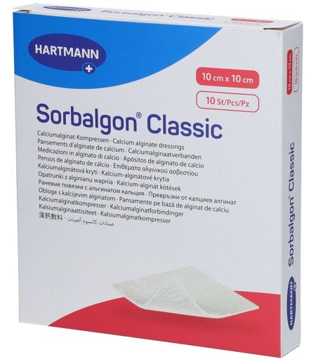 Sorbalgon Classic 10x10 cm Calciumalginat-Kompr. 10 St Verband