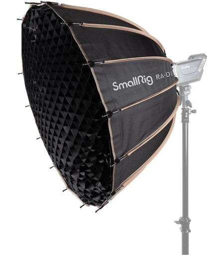 Parabolische Softbox RA-D85 Die SmallRig RA-D85 Parabolic Softbox ist ein vielseitiges Softlight-Zubehör mit 85 cm Durchmesser. Das universelle Bowens-Mount-Design macht sie kompatibel mit SmallRig RC 120D/RC 120B/RC 220D/RC220B und anderen Bowens-Mount-Leuchten. Die neue Generation des selbstentwickelten Schnellverschlusses, der Diffusor und der Rahmen sind in einer Einheit vereint, Du kannst die Kuppel in 15 Sekunden einfach montieren und demontieren. Die RA-D85 verfügt ...