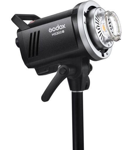 Godox MS300-V - Studioblitzgerät Nei dem MS300-V Studioblitzgerät handelt es sich um ein 300-Watt Blitzgerät mit einer Leitzahl von 53 und einer Farbtemperatur von 5600K mit Tageslichtbalance. Er hat eine Ladezeit von 0,1-1,8 Sekunden bei einer Blitzdauer von 1/2000 Sekunde.Die Leistung ist von 1/32 bis zur vollen Leistung in 50 Stufen einstellbar, während das 10-Watt-LED-Einstelllicht von 5 bis 100% einstellbar ist. Einstellbar sind alle Funktionen über Drucktasten auf der ...