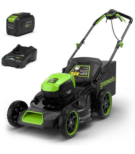 Greenworks GD48LM46SPIIK4 - Akku-Rasenmäher selbstangetrieben - 48V/4Ah - Schnittbreite 46 cm. ...