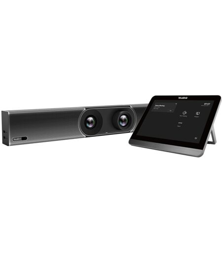Die All-in-One-MeetingBar A30 von Yealink, basierend auf dem Android 9.0 Betriebssystem, ist speziell für dedizierte Meetings in mittelgroßen Räumen und die Nutzung mit Zoom konzipiert. Als innovatives Dual-Kamera-System ausgestattet mit einer KI-unterstützten Kamera, kombiniert mit 8 MEMS-Mikrofonarrays und Lautsprechern, bietet sie ein hervorragendes Smart-Video und HD-Audio. Der A30 zeichnet sich durch seine einfache Plug-and-Play-Funktion aus, die einen schnellen Start ermöglicht und somit eine unkomplizierte, aber effiziente Lösung für jeden Benutzer darstellt.ERLEBEN SIE FOLGENDE HIGHLIGHTS:Dual 8MP Kamera120° Weitwinkel8 MEMS MikrofonPlug & PlayAuto FramingSpeaker TrackingWi-Fi und BluetoothEINFACHE INSTALLATION Die Yealink MeetingBar A30 vereint in ihrem schlanken All-in-One-Design eine Kamera, ein Mikrofon und Lautsprecher, wodurch kein zusätzlicher PC oder externe Komponenten benötigt werden. Diese effiziente Integration ermöglicht eine schnelle und unkomplizierte Plug... ...