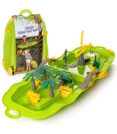 Starplast Wasserspielkoffer Jungle Produktnummer: 0665102857 Mit dem Starplast Wasserspielkoffer Jungle werden sich Ihre Kinder diesen Sommer keinen Moment langweilen! Diese Wasserbahn im Koffer ist ein Muss für jeden kleinen Entdecker. Mit dem mitgelieferten Zubehör können Kinder herrlich planschen und einen Tag voller Wasser und Spaß genießen. Zubehör: 1 Wasserpumpe, 1 Affenwippe, 1 Wellenmaschine, 1 Löwe, 1 Nilpferd, 1 Elefant, Brücken, Tore, Palmen, Dämme Füllmenge: ca. 5 Liter Ideal zum mitnehmen Kann als Trolley zusammengeklappt werden Abmessungen Trolley zusammengeklappt (LxBxH): 66,5x51x21,5 cm Abmessungen Trolley ausgeklappt (LxBxH): 133x51x28 cm. hergestellt aus hochwertigem Polypropylen-Kunststoff Gewicht: 3,5 kg Altersempfehlung: ab 2 Jahren Warnhinweis: Achtung! Enthält Kleinteile - Erstickungsgefahr - nur unter Aufsicht von Erwachsen verwenden. Herstellerinformationen: Globus Fachmärkte GmbH & Co. KG Zechenstraße 8 66333 Völklingen, Deutschland Website: www.globus-baumarkt.de ...
