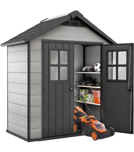 Keter Gerätehaus Oakland 754, Grau, 4,3m³, 229,6 x 124,8 x 253 cm, Duotech Struktur
