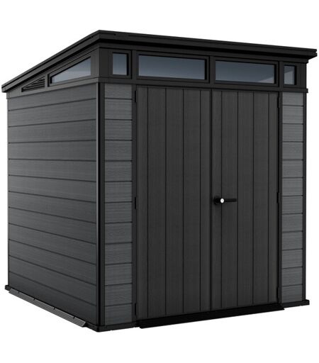 Keter Kunststoff Gerätehaus Cortina 7x7 inkl. Fußboden 216 x 218 cm Holzoptik Produktnummer: 0692652451 Das KETER Cortina 7x7 Gartenhaus aus Evotech Kunststoff ist ein modernes und robustes Gerätehaus mit den Maßen 216 x 218 x 226 cm (B x T x H). Sein zeitgemäßes Design mit schrägem Dach und Fensterstreifen bietet stilvolle Aufbewahrungsmöglichkeiten. Die doppellagigen Wände aus Evotech verbinden die Optik von Holz mit den Vorteilen von Kunststoff. Der witterungsbeständige und wartungsfreie Gartenschuppen verfügt über Stahlverstärkungen, abschließbare Doppeltüren (Schloss nicht inklusive), eine zweiseitige Belüftung, ein bis zu 200 kg belastbares Dach und einen strapazierfähigen Boden. Ein attraktives, langlebiges Gerätehaus für Ihren Garten. Aufstellmaß (mit Dach): 216 x 218 cm (BxT) = 4,7 m² Grundfläche: 4,7 m² Wandstärke: 20 mm Innenmaß: 201 x 201 cm (B x T) Firsthöhe: 226 cm Dachform: Pultdach Schneelast: 200 kg/m² Material: Evotech Kunststoff Farbe: grau/anthrazit Türmaß: 138,8 x 181 cm inklusive stabiler Bodenplatte mit Lüftung, wartungsfrei, wetterfest, langlebig, stahlverstärkt Lieferumfang: 2 Türen, abschließbarer Türgriff (Schloss separat erhältlich), Lüftungsgitter, Aufbauanleitung, Montagematerial Integrierte Fenster für natürlichen Lichteinfall Einfache Montage Herstellerinformationen: Keter Group B.V. Ericssonstraat 17 5121 MK Rijen, Niederlande eMail: info@keter.de ...