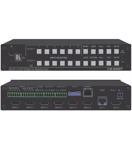 Kramer VS-62DT 6x2 4K 60 4:2:0 HDMI/HDBaseT Matrixschalter mit PoE für vergr. Reichweite 1000020129