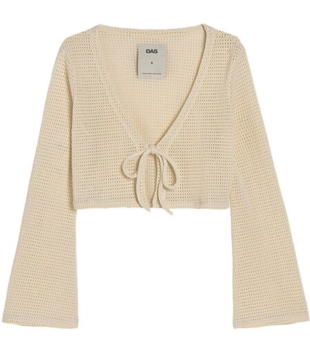Das Ecru Vacay Net Top ist ein luftiger Cardigan aus ungebleichter Baumwoll-Spulenbindung. Die verkürzte Passform und der tiefe V-Ausschnitt, der durch ein einzelnes Band an der Brust geschlossen wird, werden durch verlängerte Trompetenärmel ausgeglichen. Damen Strickjacke aus ungebleichter Baumwolle V-Ausschnitt Langarm Lange Trompetenärmel Schließt mit Bändern Kurze Passform Unifarben Farbbezeichnung: Ecru Material: 100% Baumwolle ...