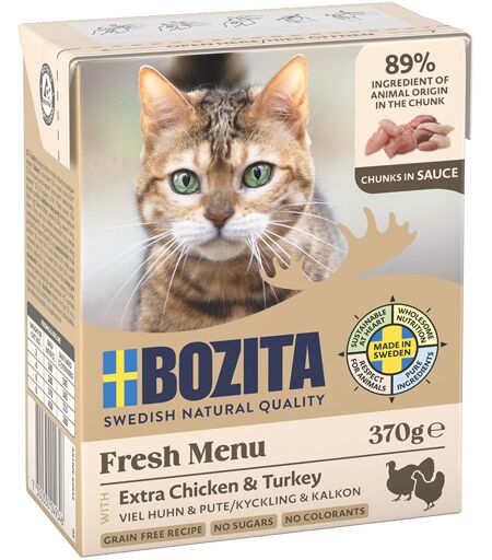 6x370g Bozita Häppchen in Gelee - Hühnchen und Pute Katzenfutter