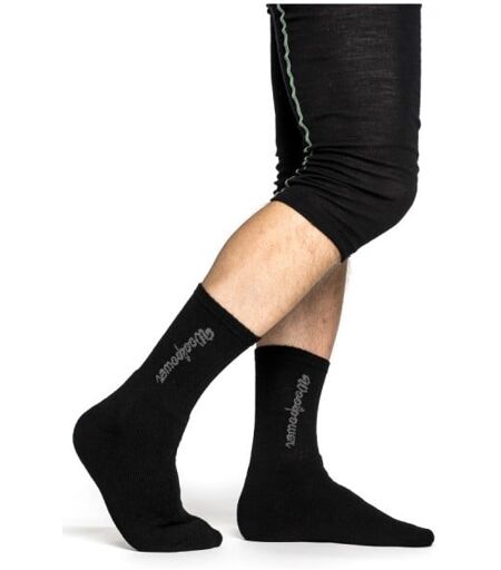 Die Woolpower Logo 400 Socke besitzt ebenso wie die Variante ohne Logo einen mittelhohen Schaft und ist aus der 400er Stärke des beliebten Ullfrotté Original Gewebes gefertigt. Der Frotteestrick mit 64 % Merinowolle hält so deine Füße in Frühjahr, Herbst und Winter angenehm warm und kann durch ihre temperaturregulierende Wirkung sogar im Sommer eingesetzt werden. Schließlich hat der hohe Wollanteil in der Woolpower Logo 400 Socke den Vorteil, dass sich keine Gerüche bilden, die Körperwärme zuverlässig zurückgehalten wird und trotzdem kein Hitzestau entsteht. Die robusten Kunstfasern im Material haben dabei die Aufgabe, die Wolle vor Verschleiß zu schützen, den Schweiß schneller nach außen zu transportieren und die Socke schneller wieder trocknen zu lassen. Mit einer dünnen Liner Socke darunter wird die Wärmeleistung übrigens noch weiter gesteigert und die Woolpower Logo 400 Socke auch für die eisigen Wintertage fit gemacht. Mit diesem Schichtsystem aus zwei Socken wirst du außerdem seltener Blasen bekommen, da die Reibung nur noch zwischen den Socken stattfindet und deine Haut weitestgehend verschont bleibt. Und wer seine Socken nachhaltig, sozial verträglich und komplett in Schweden anfertigt, kann am Ende auch ruhig voller Stolz sein Logo hineinsticken. Genauso machen es übrigens auch die Näherinnen und Näher bei Woolpower, die sich jeweils alleine um ein Produkt bis zur endgültigen Fertigung kümmern und ihren Namen auf einem kleinen Schildchen einnähen. All das macht die Woolpower Logo 400 Socke zur nachhaltigen, bequem gedämpften, geruchsneutralen und wärmenden Socke, die dich bei all deinen Touren durch das ganze Jahr begleiten kann. ...