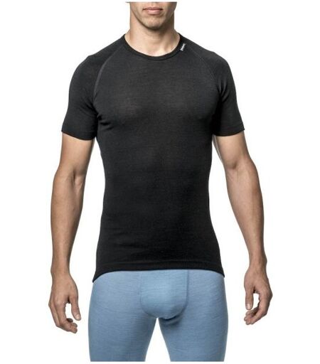 Mit dem Woolpower Lite T-Shirt hat der Hersteller eine luftige Alternative zur klassischen Unterwäsche aus Merinowolle geschaffen. Das leichte Material kann vor allem im Sommer und bei schweißtreibenden Outdoor Aktivitäten seine funktionellen Vorteile zur Geltung bringen. Das Unisex Woolpower LITE Tee ist schließlich leichter und dünner als die Kleidung aus herkömmlichen Ullfrotté Original und liegt damit noch luftiger auf der Haut. So ist das Shirt durch seine extrem hohe Atmungsaktivität und die temperaturregulierenden Eigenschaften bestens für den Einsatz im warmen Klima geeignet. Die 20 % Polyamid im Material sorgen unterwegs wie auch nach der Wäsche dafür, dass das Woolpower Lite T-Shirt zügig wieder trocknet. Die Kunstfasern schützen das Wollshirt auch vor Verschleiß und machen sogar die Maschinenwäsche bei 60° möglich. Mit 80 % besteht jedoch der Großteil des leichten T-Shirts aus natürlicher Merinowolle, die gemütlich weich auf der Haut liegt, keine Gerüche annimmt und auch dann noch angenehm wärmt, wenn sie durchgeschwitzt und feucht ist. Dank der antibakteriellen und geruchshemmenden Wirkung muss das Shirt auch nicht so häufig gewaschen werden und ist nach dem abendlichen Auslüften wieder einsatzbereit. Auch in Sachen Nachhaltigkeit kann sich das Woolpower Lite T-Shirt sehen lassen. Wie alle Produkte wird auch dieses Shirt in Schweden produziert und liegt dabei in der Verantwortung von nur einer Näherin oder einem Näher. Sobald das Produkt fertigt ist, wird sogar der Name der oder des Verantwortlichen persönlich auf einem kleinen Etikett eingenäht. Alles in allem bekommst du also mit dem Lite T-Shirt ein hochwertiges, gemütliches und funktionelles Shirt, das bei all deinen Touren für ein angenehm warmes und trockenes Hautklima sorgt. Raglanärmel flache, verschleißarme Nähte keine Geruchsbildung durch hohen Wollanteil maschinenwaschbar bei 60°C! verlängerte Rückenpartie ...