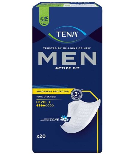 Anwendungsgebiet von Tena Men Active Fit Level 2 Inkontinenz EinlagenTena Men Active Fit Level 2 Inkontinenz Einlagen sind speziell auf die männliche Anatomie abgestimmt und bieten idealen Schutz vor Tropfnässe bei Harninkontinenz. Dank der elastischen Seitenbündchen liegen die Protektoren dezent und passgenau in der Unterwäsche und sorgen für ein angenehmes Tragegefühl. Praktisch für unterwegs: Die Einlagen befinden sich in einer dezenten, dunklen Einzelverpackung und können so unauffällig mitgenommen und entsorgt werden. Saugfähigkeit: 4 von 8 Tropfen Größe: Einheitsgröße Farbe: weiß Wirkungsweise von Tena Men Active Fit Level 2 Inkontinenz EinlagenTena Men Active Fit Level 2 Inkontinenz Einlagen wurde speziell für Männer mit geringem Urinverlust entwickelt. Die stark absorbierende Absorptionszone hält den Urin sofort zurück und hält die Haut trocken. Dank der innovativen Odour Control Technologie werden unangenehme Gerüche zuverlässig neutralisiert. Der schalenförmige Protektor wird mit selbstklebenden Bändern sicher an der Unterwäsche befestigt und sorgt durch die elastischen Seitenbündchen für Bewegungsfreiheit und perfekten Sitz.InformationIst Harnverlust bei Männern heilbar? Es gibt zahlreiche Behandlungsmethoden, die die Symptome beseitigen oder zumindest weitgehend mindern können. Bitte suchen Sie schon bei ersten Anzeichen einer möglichen Harninkontinenz Ihren Arzt auf! Welche Maßnahmen für Sie geeignet sind, hängt von den individuellen Ursachen des unkontrollierten Harnverlusts ab und um welche Form von Inkontinenz es sich handelt. Für die sofortige Hilfe bei unfreiwilligem Harnverlust bietet TENA® diskrete Protektoren an, die speziell auf die männliche Anatomie angepasst sind und diskreten Schutz in verschiedenen Saugstärken bieten. Muss ich bei häufigem Wasserlassen komplett auf Kaffee verzichten? Bei häufigem Harndrang ist es sehr wichtig, immer a ...