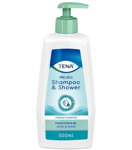Anwendungsgebiet von Tena Shampoo & ShowerTena Shampoo & Shower wurde speziell für angegriffene Haut und das Haar von älteren Personen entwickelt. Es kann als Reinigungsgel zur Ganzkörperreinigung und auch als pflegendes Shampoo angewendet werden. Dank der frisch duftenden Formulierung hinterlässt es ein frisches und sauberes Gefühl auf der Haut. Das in Tena Shampoo & Shower enthaltene Provitamin B5 lässt das Haar pflegeleicht und leicht kämmbar werden.DosierungAnwendungsempfehlung von Tena Shampoo & Shower: