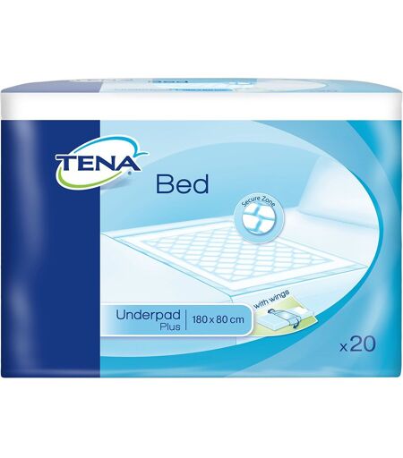 TENA Bed Unterlagen werden auf die Matratze gelegt, um Feuchtigkeit aufzunehmen und die Liegefläche trocken zu halten. Diese Schutzunterlagen bestehen aus 100 % Flockenfrischzellstoff, wodurch Flüssigkeit noch besser aufgenommen und zurückgehalten wird. Mit weichen, textilartigen Flügeln zur leichten Fixierung der Unterlage am Bett Größe 180 x 180cm ...