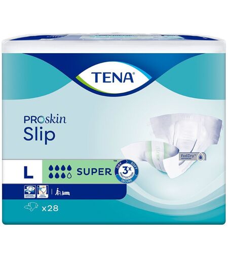 TENA ProSkin Slips: Für eine bessere Hautgesundheit und mehr Wohlbefinden Der Erhaltung gesunder Haut kommt eine besondere Rolle zu, wenn es darum geht, die Würde älterer, inkontinenter Menschen zu bewahren und für ein angenehmes Hautgefühl zu sorgen. Mit den optimierten ProSkin Slip Produkten unterstützt TENA gleichzeitig die Arbeit von Pflegekräften, da der zeitliche Aufwand für die Behandlung von Hautproblemen gemindert wird. Dank innovativer Technologien sorgt das Inkontinenzprodukt für mehr Sicherheit und größeren Auslaufschutz. Sicherer Schutz bei starkem Harnverlust TENA Slip Super ist ein All-in-One-Inkontinenzprodukt, das sich für mobil eingeschränkte und bettlägerige Menschen mit starkem Urinverlust eignet. Die Einweg-Inkontinenzhose garantiert dank verstellbarer Laschen perfekten Sitz, sicheren Auslaufschutz und hohen Tragekomfort. Die FeelDry Advanced™-Technologie hält die Haut trocken, da die auslaufende Flüssigkeit schnell von der Oberfläche weggezogen wird. Der stark absorbierende Kern schließt selbst größere Mengen Urin verlässlich ein, während das atmungsaktive ConfioAir™-Rückenpanel die Haut atmen lässt. Diese Eigenschaften unterstützen die natürliche Hautgesundheit und sorgen für Wohlbefinden beim Träger. Der wirksame Geruchsneutralisierer verhindert unangenehme Gerüche und bewahrt das Frischegefühl. Einfache Handhabung für schnelles Wechseln Das Inkontinenzprodukt ist leicht zu öffnen und ermöglicht durch das offene Design mit breiten Klebelaschen einen effizienten Wechsel im Stehen und Liegen. Für einen perfekten Sitz lassen sich die Verschlüsse einfach anpassen und erneut befestigen. Der Nässeindikator zeigt zudem auf einen Blick an, wann es Zeit für einen Wechsel der Inkontinenzhose ist. Die Vorteile von TENA ProSkin Slip Super Dreifachschutz für Hautgesundheit: Hält trocken, ist sanft zur Haut und sorgt für Auslaufschutz FeelDry Advanced™: Deck- und Verteilerschicht saugen Urin von der Oberfläche weg und halten so die Haut trocken Starker Saugkern: Wirkt schnell und hochabsorbierend für wirksamen Auslaufschutz Atmungsaktive Materialien lassen die Luft zirkulieren und sorgen für Hautgesundheit und Komfort Extra breite Klettverschlüsse für komfortablen Sitz: Leicht anzulegen und mehrmals anpassbar, um einen perfekten Sitz, Schutz und Tragekomfort zu garantieren Nässeindikator: Zeigt an der Außenseite an, ob ein Wechsel notwendig ist Geruchsneutralisierer: Wirkt sofort und dauerhaft Dermatologisch getestet und zertifiziert von Skin Health Alliance TENA ProSkin wurde speziell zur Verbesserung der... ...