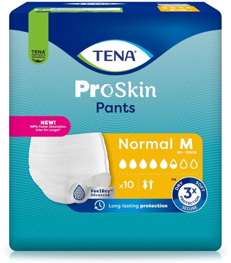 Einweg-Pants mit diskretem Auslaufschutz Ultra-schnelles Aufsaugen für anhaltende Trockenheit Reduziert unerwünschte Gerüche Körpernahe Passform Atmungsaktiv und sanft zur Haut Verlässlicher Schutz bei Blasenschwäche Blasenschwäche ist weit verbreitet. Allein in Deutschland leiden ca. 7 bis 8 Millionen Menschen an unwillkürlichem Urinverlust. Um Betroffenen das Leben mit Harninkontinenz zu erleichtern, entwickelt TENA® seit über 50 Jahren zuverlässige Hygieneprodukte für verschiedenste Bedürfnisse.TENA® Pants Normal für mittlere bis starke Blasenschwäche sind dank SmartDesign jetzt noch diskreter und komfortabler: Die saugfähigen Materialien sind dort konzentriert, wo sie am meisten benötigt werden. Dadurch sind die Einweghosen 20% dünner, jedoch 100% sicher wie bisher. Die Pants sind ebenso dehnbar wie Unterwäsche und passen sich den Körperkonturen an. Die körpernahe Passform verhindert ein Verrutschen der verstärkten Schutzzonen und bietet verlässlichen Schutz vor Auslaufen – im Sitzen, Stehen und Liegen.Frische & SicherheitZuverlässige Hygiene-Produkte gewährleisten bei Inkontinenz ein Höchstmaß an Sicherheit und Diskretion. TENA® Pants Normal wurden speziell für sicheren Schutz vor Auslaufen und Gerüchen entwickelt. Die innovative FeelDry Technologie sorgt dank ultra-schnellem Aufsaugen für lang anhaltende Trockenheit und leitet auch größere Mengen an Urin in den saugfähigen Kern: Die Flüssigkeit wird sicher aufgenommen und bleibt im Saugkern eingeschlossen. Leistungs- fähige Auslaufbarrieren garantieren zusätzlichen Schutz. Für Frische und angenehmen Tragekomfort sorgen 100% atmungsaktive Materialien. Sie lassen die Luft zirkulieren und halten so die Haut trocken und gesund.Experten-Rat bei InkontinenzAuch bei Blasenschwäche ist es wichtig, auf eine ausreichende Flüssigkeitszufuhr zu achten, um etwaige Infektionen der Harnwege zu vermeiden. Trinken Sie deshalb täglich ca. 1,5 bis 2 Liter Wasser und ungesüßte Kräuter- und Früchtetees. Auf stark harntreibende Getränke wie Kaffee und koffeinhaltige Limonaden, schwarzen Tee und Alkohol sollte hingegen weitgehend verzichtet werden.HARNINKONTINENZ BEI FRAUEN Frauen sind etwa doppelt so häufig von unkontrolliertem Harnverlust betroffen wie Männer. Dabei leiden nicht nur Frauen in den Wechseljahren an den Beschwerden, bereits jede dritte Frau über 35 Jahren hat Erfahrungen mit Blasenschwäche. Besonders verbreitet ist die Belastungsinkontinenz bei körperlichen Anstrengungen, die häufig durch eine schwache Beckenbodenmuskulatur bedingt ist. AKTIV TROTZ BLASENSCHWÄCHE Menschen mit Harninkontinenz ziehen sich aus Scham oder Furcht vor peinlichen Situationen oft völlig aus dem Leben zurück. Doch das muss nicht sein! Mit diskreten Einlagen und Pants in verschiedenen Stärken ist man jederzeit sicher vor Auslaufen, Gerüchen und Feuchtigkeit geschützt und kann das Leben auch weiterhin unbeschwert genießen. INKONTINENZ BEI KRANKHEITENBlasenschwäche kann auch eine Begleiterscheinung von Erkrankungen sein.... ...