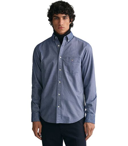 Herren Hemd aus Oxford-Baumwolle Normale Passform Button-down-Kragen Brusttasche Verstellbare Manschetten Knöpfe aus recyceltem Polyester Kellerfalte mit Locker-Loop-Schlaufe am Rücken Grafische GANT-Stickerei auf der Brusttasche Unifarben Farbbezeichnung: Denim Blue Material: 100 % Baumwolle ...