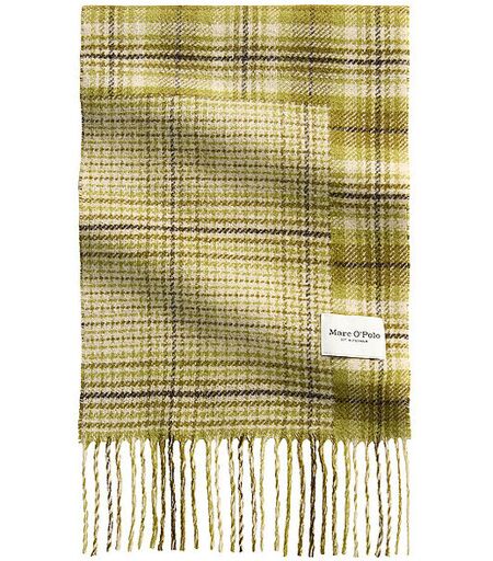Damen Schal aus reiner Schurwolle Patchwork-Karo Logo-Aufnäher Lange Fransen an den Kanten Farbbezeichnung: Multi / Bright Pea Material: 100% Schurwolle Die Marke Marc O`Polo ist Mitglied der Fair Wear Foundation. ...