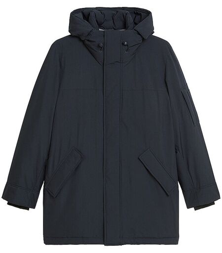 Warmer Herren Parka Stehkragen mit Kapuze und Tunnelzug Schließt mit verdecktem Reißverschluss und Druckknopfleiste Langarm mit Sturmbündchen Eine Reißverschlusstasche am linken Ärmel Seitliche Eingrifftaschen Gerade Passform Unifarben Farbbezeichnung: Dark Navy Material: 100% Polyester Die Marke Marc O`Polo ist Mitglied der Fair Wear Foundation. ...