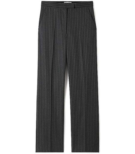 Damen Hose aus Woll-Mischung Mittlere Leibhöhe Verdeckter Verschluss Zwei Eingrifftaschen Gerades, weites Bein Streifenmuster Farbbezeichnung: Dark Grey Material: 54% Polyester, 44% Wolle, 2% Elastan ...