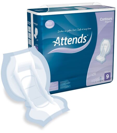 Attends Contours sind anatomisch geformte Vorlagen.Sie nehmen auch größere Harnmengen schnell auf und schließen sie sicher ein.Somit sorgen sie für ein trockenes Tragegefühl und einen hautgesunden pHWert.Die Odour Protection im Saugkern der Vorlagen beugt unangenehmen Gerüchen vor.Mit zusätzlichem Seitenauslaufschutz für Sicherheit auch im Liegen sowie Nässeindikator auf der Rückseite.Anwendung:Saugstärke 9 :- komplette Blasenentleerung bei Drang- oder Reflexinkontinenz- von leichten Formen des Stuhlabgangs bis hin zur vollständigen StuhlinkontinenzDie Saugstärke 9 wird mit Fixierhosen sicher am Körper gehalten. ...