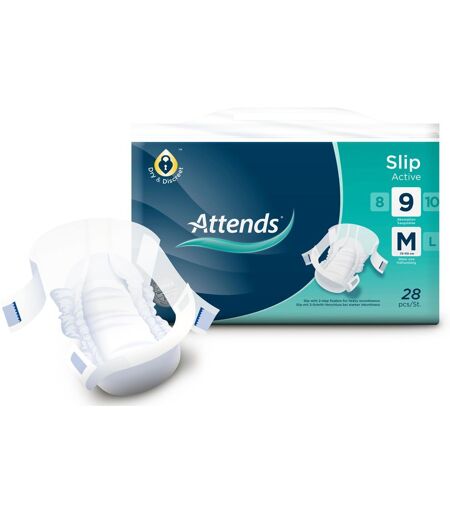 Attends Slips bieten dank ihrer anatomischen Form perfekten Sitz und maximalen Auslaufschutz.Die textilartigen Seitenflügel sind luftdurchlässig.Attends Odour Protection verhindert unangenehme Gerüche.Der Slip kann zunächst mit Klettpunkten vorfixiert und danach mit den extra breiten Klebestreifen am Körper angelegt und auch wieder geöffnet werden.Aktive und mobile Personen können sich den Slip selbstständig anlegen. ...