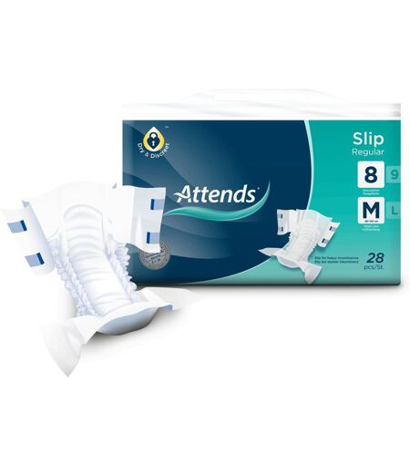 Attends Slip Regular bieten das Extra an Sicherheit in der Inkontinenzversorgung.Der leistungsstarke zweifache Saugkern mit Superabsorber steht für hervorragende Saugleistung und sicheres Einschließen von Flüssigkeit und unangenehmen Gerüchen.Er sorgt somit für einen hautgesunden pH-Wert und ein trockenes Tragegefühl.Mikroskopisch kleine Poren in der Außenseite der Produkte lassen die Luft zirkulieren.Komfortable Klettverschlüsse erleichtern das An- und Ablegen. Anwendung:Sichere Versorgung bei vollständiger Harn- und Stuhlinkontinenz.Auch für bettlägerige Personen geeignet. ...