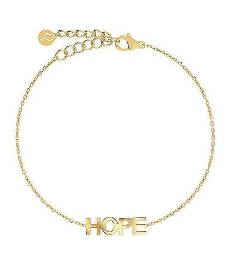 Vertrauen in die Zukunft und in dich selbst signalisiert das Hope-Armkettchen mit dem fein ausgearbeiteten Text. Dieses Armkettchen wird zum Lieblingsstück, das du an jedem Tag der Woche tragen und auch gerne verschenken wirst. Der Text des Hope-Armkettchens ist an einer hübschen Ankerkette befestigt und hier in glänzender 14-karätiger Vergoldung zu sehen. Größe der Dekoration 17 x 5 mm, verstellbare Länge der Kette 15,5–18,5 cm Glänzende 14-karätige Vergoldung auf Edelstahl Nickelfrei Wasserfest. ...