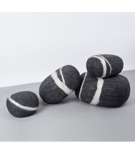 Der myfelt Hugo Filz-Kieselstein ist ein reines Naturprodukt aus 100% reiner Schurwolle. Dieses Produkt wird aus vielen Schichten aufwendig in reiner Handarbeit gefilzt. Da er komplett aus Filz gearbeitet wird (ohne Polyester- oder Synthetikfüllung) verfügt er über eine perfekte Festigkeit. Mit dem myfelt Hugo Filz-Kieselstein setzen Sie natürliche und klare Wohnakzente. Kein Kieselstein gleicht dem anderen, sondern jeder ist ein Unikat, da die harmonische Maserung bei jedem Stein einzigartig ist. Egal ob Sie den Hugo Filz-Kieselstein als Meditationskissen, Yogakissen oder hochwertiges Dekoelement verwenden - er lädt zum Verweilen und Entspannen ein. Erhältlich ist der myfelt Hugo Filz-Kieselstein in vielen Größen. Er ist sowohl wasser- als auch schmutzabweisend. Neben diesem Kieselstein in dunkelgrau gehören auch weiter naturfarbene Filz-Kieselsteine zum Sortiment. Diese... ...