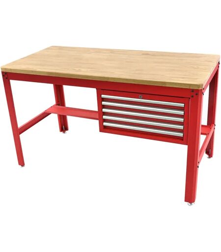 HBM 155 cm Profi-Werkbank mit 5 Schubladen und Holzarbeitsplatte, ROT
