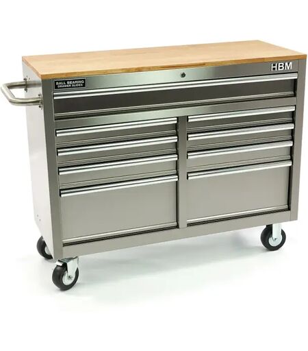 Du hast nicht viel Platz in deiner Werkstatt? Dann ist dieser 117 cm lange, mobile Werkzeugwagen aus Edelstahl von HBM ideal für die sichere und ordentliche Aufbewahrung deiner Werkzeuge. Die neun unterschiedlich großen Schubladen kannst du nach deinen eigenen Vorstellungen zur Aufbewahrung von Werkzeugen und Kleinteilen einrichten. Der Werkzeugwagen ist mit einer stabilen Massivholz-Arbeitsplatte ausgestattet. Der robuste Griff und die vier stabilen Rollen machen es einfach, die gefüllte Werkbank an den gewünschten Ort zu bewegen. Über den HBM mobilen Werkzeugwagen Für die Einrichtung dieses mobilen Werkzeugwagens sind im Webshop Schaumstoffeinlagen erhältlich, damit dein Werkzeug rutschfest und sicher gelagert ist. Im Webshop sind auch Einlagen mit kompletten Werkzeugsätzen erhältlich. Die tiefsten Schubladen eignen sich z. B. zur Aufbewahrung von Elektrohandwerkzeugen. Für die am häufigsten verwendeten Teile stehen verschiedene Ablagebehälter zur Verfügung. Mit diesem Werkzeugwagen hast du immer alles zur Hand. ...