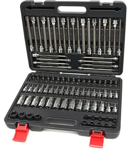 Mit diesem 107-teiligen Steckschlüsselsatz haben Sie die gebräuchlichsten Steckschlüssel immer zur Hand. Geeignet für Berufsanfänger und erfahrene Heimwerker. Der Satz enthält verschiedene Größen von Steckschlüssel- und Torx-Bits, sowohl in englischen als auch in metrischen Größen. Darüber hinaus werden die Torx in drei verschiedenen Ausführungen geliefert. E-Torx, manipulationssicherer und langer Torx. Das ganze Set wird in einem praktischen Koffer geliefert, in dem jedes Teil seinen eigenen Platz hat. So ist alles schnell zu finden und leicht zu transportieren oder zu verstauen. ...