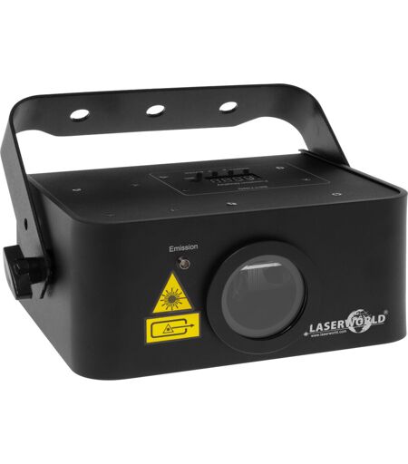 Achtung: Dieses Produkt beinhaltet einen Laser der Klasse 2 oder höher, gemäß der Klassifizierung nach DIN EN 60825-1 2014. Die Bestimmungen für den Betrieb von Lasersystemen der jeweiligen Klasse sind einzuhalten.: Der Laserworld EL-300RGB ist ein RGB-Weißlicht-Effektlaser mit einstellbarem Farbwechsel, Rotation und Strobo. Trotz der gut sichtbaren Laserstrahlen aufgrund gleichmäßig verteilter Leistung dank Spezialoptik ist der Laserworld EL-300RGB nach Laserklasse 2 klassifiziert. Das bedeutet, dass dieser Showlaser wesentlich sicherer in der Anwendung ist als vergleichbare Lasersysteme in einer höheren Laserklasse (3R, 3B, 4). Die vielen feinen und hellen farbigen Laserstrahlen erstrahlen wie ein Sternenhimmel, wenn sie auf eine Wand oder eine andere Oberfläche projiziert werden, und sind der Hingucker auf jeder Party. Die Farben, sowie deren Helligkeit, die Rotationsgeschwindigkeit und ein Stroboeffekt können manuell per Druckknopf am Gehäuse oder via DMX angepasst werden. Ein Musikmodus, in dem der Laser synchron zur Hintergrundmusik die Laserstrahlen anpasst, und ein Automatikmodus sind ebenfalls verfügbar. Im Musikmodus kann die Sensitivität des Mikrofons über einen Drehregler eingestellt werden. sehr sichere Laserklasse 2, trotzdem gut sichbare Laserstrahlen, Automatik- und Musikmodus, Ansteuerbar via DMX, Master-Slave-Modus, Effekte können manuell über Druckknöpfe am Gehäuse eingestellt werden, Das rote Diodenmodul mit einer Wellenlänge von 638 nm, das grüne Diodenmodul mit einer Wellenlänge von 520 nm und das blaue Diodenmodul mit einer Wellenlänge von 450 nm garantieren schöne Farben und klare, helle Laserstrahlen. Dieser Effektlaser der Laserworld Ecoline Serie verfügt über einen Schlüsselschalter, einen Interlock-Anschluss und einen An-Aus-Schalter zur sicheren Bedienung. Der Laserworld EL-300RGB Showlaser eignet sich perfekt für Mobile DJs, sowie Bars und kleine Discotheken. Technische Daten: , , Gesamtleistung typisch: , 300 mW , Garantierte Leistung: , 240 mW , Leistung Rot: , 80 mW / 638 nm , Leistung Grün: , 60 mW / 520 nm , Leistung Blau: , 100 mW / 450 nm , Laserquellen: , Diode , Laserklasse: , 2, EN 60825-1 2014 , Betriebsmodi: , Automatikmodus, Musikmodus, DMX, Master-Slave , Scanwinkel max.: , >50° , Basismuster: , Sternenhimmel , Zubehör: , Stromkabel, Bedienungsanleitung, Interlock, Schlüssel , Stromversorgung: , AC 100-240V 50/60Hz im Netzteil DC 12V (im Lieferumfang enthalten) , Stromverbrauch: , 15 W , Maße: , 192 x 150 x 89 mm , Gewicht: , 1.25 kg ...
