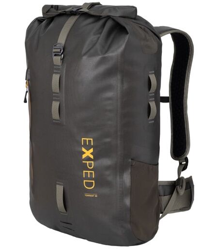Der Exped Torrent 30 Rucksack sieht im Grunde wie ein handelsüblicher wasserdichter Packsack aus und besitzt auch den entsprechenden Rollverschluss. Auf der Rückseite findest du jedoch ein bequem gepolstertes Tragesystem mit Hüftgurt und Schulterträgern, das die Lasten deines Gepäcks optimal verteilt. Auf den ersten Blick scheint der Exped Torrent 30 nur aus einem einzigen großen Hauptfach zu bestehen, jedoch befindet sich im Inneren noch eine Einschubtasche mit Reißverschluss und Schlüsselhalterung für den besseren Überblick. Außen hast du mehrere Daisychains zur Verfügung, um mit Karabinern oder Gurtbändern noch weitere Ausrüstung unterzubringen. Über die weite Öffnung kannst du den Torrent 30 einfach be- und entladen. Der obere Kompressionsriemen, mit dem du den Rollverschluss noch zusätzlich sichern kannst, ist schließlich noch abnehmbar. So bekommst du mit dem Exped Torrent 30 einen absolut wasserdichten, minimalistischen und trotzdem vielseitigen Rucksack mit komfortablem Tragesystem, der deine Ausrüstung auch ohne Regenhülle sicher und trocken bei der Kanutour oder bei deinen Strecken durch strömenden Regen transportiert. ...