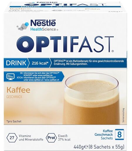 Egal, ob Sie Ihr Gewicht halten oder endlich wieder zu Ihrem Wohlfühl-Body finden möchten: Das umfassende Sortiment der Optifast® Diet Selection kann beides! Es bietet Ihnen bei nur maximal 250 kcal pro Portion eine große Geschmacksvielfalt von lecker-cremig bis herzhaft-würzig. Als vollwertiger Mahlzeitersatz für eine gewichtskontrollierende Ernährung erfüllt die Zusammensetzung hohe rechtliche Anforderungen und ist nicht mit handelsüblichen Proteinprodukten vergleichbar.Wirkungsweise von Optifast home Drink Kaffee PulverOptifast home Drink Kaffee Pulver ersetzt eine komplette Mahlzeit im Rahmen einer kalorienarmen Ernährung. Durch die hochwertige Eiweißzusammensetzung der Optifast home Drink Kaffee Pulver wird der Abbau des Körperfetts effektiv unterstützt, während die Muskelmasse erhalten bleibt. Außerdem wird der Körper hervorragend mit allen erforderlichen Nährstoffen, Vitaminen und Mineralstoffen versorgt, um die Leistungsfähigkeit zu fördern.Wirkstoffe / Inhaltsstoffe / ZutatenZutaten von Optifast home Drink Kaffee Pulver: