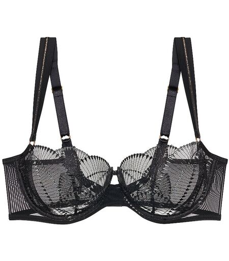 Eleganter Damen Bügel-BH mit edler Spitze Dreifach verstellbarer Haken-Ösen-Verschluss Verstellbare Träger Semitransparente Spitze Farbbezeichnung: Black Material: 48% Polyester, 43% Polyamid, 9% Elasthan ...