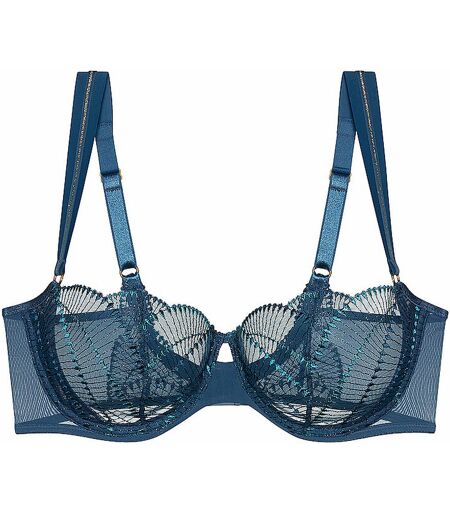 Eleganter Damen Bügel-BH mit edler Spitze Dreifach verstellbarer Haken-Ösen-Verschluss Verstellbare Träger Semitransparente Spitze Farbbezeichnung: Smoky Blue Material: 48% Polyester, 43% Polyamid, 9% Elasthan ...