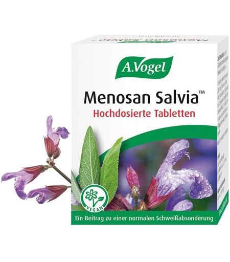 Anwendungsgebiet von A.vogel Menosan Salvia TablettenA.vogel Menosan Salvia Tabletten ist ein Nahrungsergänzungsmittel mit dem Frischpflanzenpräparat Menosan Salvia, das aus frischen Salbeiblättern hergestellt wird. Traditionell findet es Anwendung bei übermäßigem Schwitzen und Wärmegefühl, ebenso wie bei nächtlichen Schweißausbrüchen.Die Produkte von A.Vogel sind weltweit bekannt für ihre ausgezeichnete Qualität und Verträglichkeit.Die verwendeten Pflanzen kommen aus unserem eigenen Anbau oder von streng kontrollierten Vertragsbauern. Unsere Felder werden in traditioneller Art und Weise kultiviert, ohne Einsatz von Pestiziden, ohne künstlichen Dünger - ein perfekter Boden und perfekte Bedingungen wie schon zu Zeiten unseres Gründers Alfred Vogel.Die Pflanzen werden per Hand geerntet und in frischem Zustand verarbeitet. Der einzigartige Herstellungsprozess bei A.Vogel stellt sicher, dass die aktiven Bestandteile der Pflanze erhalten bleiben.Die Analysen, die während und nach der Herstellung durchgeführt werden, garantieren eine hohe Qualität und Reinheit unserer Produkte.Wirkstoffe / Inhaltsstoffe / ZutatenZutaten von A.vogel Menosan Salvia Tabletten: Salbeifrischpflanzenextrakt, Füllstoff: mikrokristalline Cellulose, Emulgator: Sucoselaurat, Trennmittel: Modifizierter Cellulosegummi, Siliciumdioxid, Mono- und Diglyceride von Speisefettsäuren.1 Tablette A.Vogel Menosan Salvia enthält:Spissumextrakt aus 3400 mg Tinktur aus frischen Salbeiblättern (Extraktionsverhältnis 1:17).GegenanzeigenBei bekannter Überempfindlichkeit gegenüber einen der oben genannten Inhaltsstoffe sollte das Produkt nicht angewendet werden.DosierungVerzehrempfehlung von A.vogel Menosan Salvia Tabletten: Errwachsene nehmen 1 Tablette täglich mit einem Schluck Wasser.HinweiseAufbewahrung: Trocken, vor direkter Sonneneinstrahlung geschützt und bei Raumtemperatur lagern.Mindestens haltbar bis /L: siehe Packungsboden. Die angegebene empfohlene ...