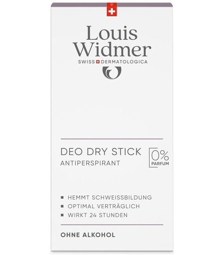 Anwendungsgebiet von Louis Widmer Deo Dry Stick Antiperspirant unparfümiertDas Louis Widmer Deo Dry Stick Antiperspirant unparfümiert eignet sich für die Anwendung in den Achselhöhlen sowie an den Händen und Füssen. Auch verstärkte Schweißbildung in Körperfalten (übergewichtige Personen) kann wirkungsvoll behandelt werden. Die Anwendung erfolgt in der Regel einmal täglich. Die maximale Wirksamkeit, d.h. eine bis zu 24 Stunden anhaltende Antiperspirantwirkung, wird nach zwei bis drei Tagen Anwendung erreicht.Wirkungsweise von Louis Widmer Deo Dry Stick Antiperspirant unparfümiertDer Louis Widmer Deo Dry Stick Antiperspirant unparfümiert bietet effektiven Schutz gegen übermäßiges Schwitzen durch Aluminium Chlorhydrat, das die Schweißproduktion reguliert. Hochwertige Wirkstoffe sorgen für eine zuverlässige Geruchsneutralisierung und sind sowohl dermatologisch als auch allergologisch unbedenklich. Zudem hemmt Ethylhexylglycerin gezielt geruchsverursachende Bakterien auf der Haut, wodurch unangenehme Gerüche verhindert werden. Dank seiner milden Grundlage ist das Deo auch für empfindliche Haut bestens geeignet und kann selbst auf irritierter oder geröteter Haut im Achselbereich problemlos angewendet werden.Wirkstoffe / Inhaltsstoffe / ZutatenLouis Widmer Deo Dry Stick Antiperspirant unparfümiert enthält:Dimethicone, Stearyl Alcohol, Aluminum Chlorohydrate, Cetyl Alcohol, Isohexadecane, PPG-14 Butyl Ether, Talc, Hydrogenated Castor Oil, Allantoin, Glyceryl Stearate, Ethylhexylglycerin.
