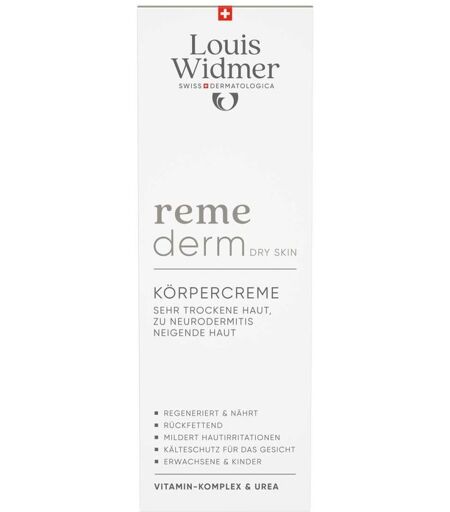 Anwendungsgebiet von Louis Widmer remederm KörpercremeDie Louis Widmer remederm Körpercreme wurde gezielt für sehr trockene, gereizte und gerötete Haut entwickelt und ist ideal für die empfindliche Haut von Babys, Kindern sowie für die Altershaut geeignet. Wirkungsweise von Louis Widmer remederm KörpercremeDie Körpercreme überzeugt durch ihre polyvalente Wirkung: Sie schützt, pflegt, befeuchtet und unterstützt die Regeneration der Haut. Gleichzeitig stärkt sie die natürliche Barrierefunktion, normalisiert die Verhornung und bietet wirksamen Schutz vor äußeren Einflüssen. Bei regelmäßiger Anwendung kann die Remederm Körpercreme das Fortschreiten zu extrem trockener und geschädigter Haut verhindern. Ihre optimale Verträglichkeit macht sie zur idealen Pflege bei empfindlicher und anspruchsvoller Haut.Wirkstoffe / Inhaltsstoffe / ZutatenLouis Widmer remederm Körpercreme enthält: