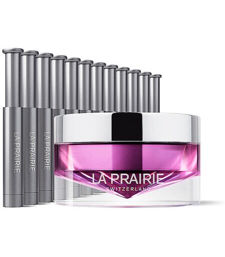 Erleben Sie mit La Prairie Platinum Rare Haute-Rejuvenation Mask einen neuen Meilenstein in der nadelfreien Hautverjüngung. Inspiriert von dem Traum der zeitlosen Schönheit entwickelte La Prairie das zweistufige Intensiv-Treatment für die Nacht. Bestehend aus 12 Ampullen und einer seidig-zarten Crememaske versorgt das Treatment aus der Platinum Rare Collection die Haut mit essenziellen Inhaltsstoffen. Im ersten Schritt versorgt das Ultra-Potent Concentrate der Ampulle die Haut injektionsfrei mit Hyaluronsäure und Kollagen, den essenziellen Elementen jugendlicher Haut. Im zweiten Schritt folgt die reichhaltige Crememaske, die dank der Kraft des Platins und dem Exclusive Cellular Complex™ die natürlichen Prozesse der Hautverjüngung anregt und die Feuchtigkeitsbarriere der Haut stärkt. Die Ampullen sowie der Creme-Tiegeleinsatz sind 100% recycelbar und können als Refill erneut gekauft werden. La Prairie ist seit 1978 Pionier im Bereich luxuriöser Hautpflege. Seither nutzt La Prairie seine Entdeckungen für einzigartige Pflegeprodukte wie Tagescremes, Nachtcremes oder Make-Up, die immer wieder neue Maßstäbe in Sachen Innovation, Exklusivität und Wirksamkeit setzen. 1. La Prairie Platinum Rare Haute-Rejuvenation Mask ist ein innovatives Intensiv-Treatment mit Hyaluron und Kollagen für die Nacht 2. Die zweistufige Nachtpflege basiert auf einer patentierten Macro-Infusion Technology, die eine effektive Zufuhr der leistungsstarken Wirkstoffe ermöglicht 3. Im ersten Schritt versorgt das Ultra-Potent Concentrate in den Ampullen die Haut mit Hyaluronsäure und Kollagen – den essenziellen Elementen jugendlicher Haut 4. Im folgenden Schritt nährt die seidige Crememaske die Haut mit reichhaltigen Nährstoffen und fördert dank Platin und dem Exclusive Cellular Complex™ den natürlichen Verjüngungsprozess 5. La Prairie Platinum Rare Haute-Rejuvenation Mask ist ein Meilenstein in der nadelfreien Hautverjüngung und sorgt für ein sichtbar verjüngtes Aussehen 6. Basierend auf 90 Jahren Schweizer Zellularwissenschaft steht La Prairie für exklusive Pflegeprodukte, angereichert mit den wertvollsten Inhaltsstoffen Anwendung: Wöchentlich abends nach der Platinum Rare Cellular Life-Lotion, dem Haute-Rejuvenation Eye Elixir und der Haute-Rejuvenation Eye Cream als letzten Schritt Ihres Pflegerituals auf Gesicht, Hals und Dekolleté auftragen. La Prairie empfiehlt, die Maske mindestens ein Mal bis maximal drei Mal pro Woche zu verwenden. SCHRITT 1. Die Phiole aktivieren und das hochwirksame Konzentrat in die Handfläche geben. Mit den Fingerspitzen sanft auf Gesicht, Hals und Dekolleté auftragen. Die Augenpartie aussparen. Komplett einziehen lassen, bevor Sie mit Schritt 2 fortfahren. SCHRITT 2. Mit dem Platin-Spatel eine großzügige Menge der intensiv verwöhnenden Creme aus dem Tiegel auf die Fingerspitzen geben. Mit sanften, nach außen und oben gleitenden Bewegungen auf Gesicht, Hals und Dekolleté auftragen. Die Augenpartie aussparen. Nicht abwaschen. ...