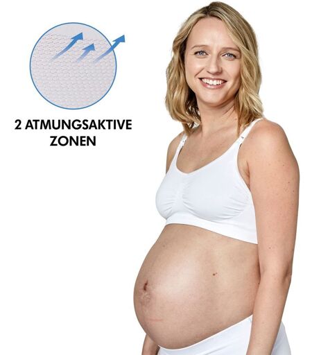medela Keep Cool™ Schwangerschafts- und Still-BH weiß, Gr. M Dieser Schwangerschafts- und Still-BH verfügt über zwei integrierte Atmungszonen, womit er für ein angenehm frisches Gefühl sorgt, und eine neue Quick Dry Technologie, die Ihnen hilft, Ihre Körpertemperatur zu regulieren, und gleichzeitig Halt und Komfort bietet. Die 4-way Adaptive Stretch™-Technologie sorgt dafür, dass Ihr BH mit Ihnen wächst und von der Schwangerschaft bis zur Stillzeit getragen werden kann, – für ein kühles und frisches Gefühl, trotz Ihrer schwankenden Körpertemperatur. Schnelltrocknende Technologie, einzigartige Atmungszonen und Temperaturregulierung sorgen dafür, dass Sie sich kühl und trocken fühlen Die Soft Touch Adaptive Stretch™-Technologie sorgt für eine perfekte Passform, die mit Ihrem sich verändernden Körper mitwächst Sanfter bis mittlerer Halt für mehr Komfort Leicht verstellbare Träger sorgen dafür, dass Sie die perfekte Passform erhalten Vollständig herunterklappbare Cups für maximalen Hautkontakt, um die Bindung zu Ihrem Baby zu fördern Erhältlich in Schwarz, Weiß und Chai* und in den Größen S–XL für starken Halt & perfekte Passform Dieser bügellose & nahtlose BH verleiht Ihnen ein weiches Tragegefühl und schmiegt sich federleicht an eine der empfindlichsten Stellen Ihres Körpers an. Hinweise Aus 92 % Nylon und 8 % Spandex Maschinenwäsche bei bis zu 60 °C Nur Schonwaschgang Bei Bedarf chlorfreie Bleiche Hängend trocknen, nicht bügeln, nicht chemisch reinigen Vor dem Tragen waschen Mit ähnlichen Farben waschen ...