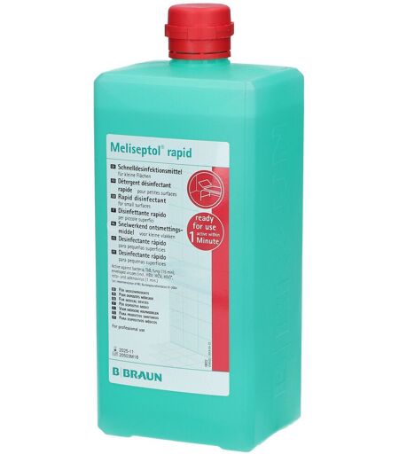 BeschreibungGebrauchsfertiges alkoholisches Desinfektionsmittel zum Versprühen oder WischenEigenschaftenAldehydfrei und frei von Alkylaminen Frischer Geruch Für Oberflächen von Medizinprodukten, wie z.B. Behandlungsstühle, Arbeitsflächen und OP-Ausstattungen Umfassendes Wirkungsspektrum: bakterizid (inkl. MRSA, TbB), und fungizid (inkl. Schimmelpilze); begrenzt viruzid (inkl. HBV, HCV, HIV) und viruzid Einwirkzeit: 1 Minute (gem. DGHM/VAH und begrenzt viruzid) Einwirkzeit: 10 Minuten (Viruzidie) DGHM-/VAH-gelistet und in der IHO-ViruzidielisteHinweiseFührt in der praktischen Anwendung nicht zu unerwünschten Hautreaktionen durch hautreizende oder sensibilisierende Wirkung (Dermatologisches Fachgutachten, Dermatest Münster, 07/2002) Nicht auf heißen Flächen oder an unter Spannung stehenden elektrischen Geräten anwenden Alkoholempfindliche Materialien vorher auf ihre Beständigkeit gegenüber Meliseptol® rapid prüfen.Desinfektionsmittel sicher verwenden. Vor Gebrauch stets Kennzeichnung und Produktinformationen lesen! ...