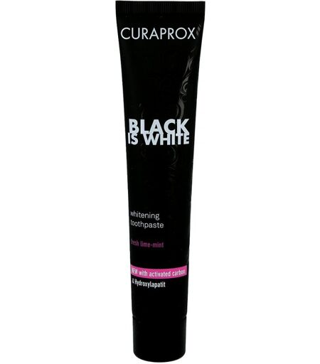 Anwendungsgebiet von Curaprox Black is White KohlezahnpastaCuraprox Black is White Kohlezahnpasta ist eine Whitening-ZahnpastaWirkungsweise von Curaprox Black is White KohlezahnpastaCuraprox Black is White Kohlezahnpasta entfernt Verfärbungen mithilfe von Aktivkohle, ohne zu schmirgeln, ohne zu bleichen. Dabei stärkt Curaprox Black is White Kohlezahnpasta die Mundgesundheit mit einem erfrischend-limonigen Geschmack.