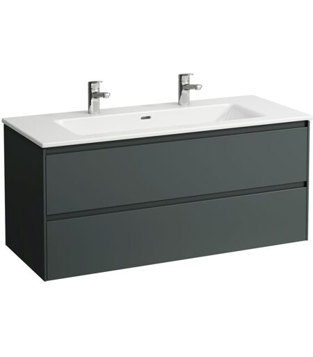 Laufen Waschtisch und Waschtischunterschrank PRO S SET LANI 500x1200x540 LAUFEN Waschtisch + Waschtischunterbau PRO S SET LANI 500x1200x540 Waschtisch weiß 2 Hahnlöcher + Lani Waschtischunterbau 2 Schubladen integrierte Griffleiste inklusive Ordnungssystem verkehrsgrau ...