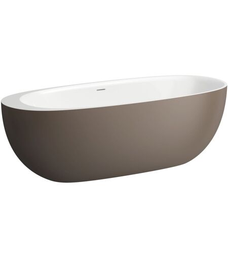 LAUFEN Freistehende Badewanne ILBAGNOALESSI 800x1850x590 aus Mineralgusswerkstoff Sentec mit Mittelablauf oval Kaffee matt außen / Weiß matt innen ...